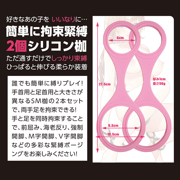 好きなあの子をいいなりに……。ただ通すだけでしっかりSMプレイになる、超シンプルな拘束具「SMシリコン手足枷」!SMプレイの核心となる「拘束」を、とってもお手軽にするSMアイテムです。輪っかの中に、手や足をただ通すだけ。難しいことが一切無いシリコン枷です。本体のシリコン素材には柔軟性がありますので、装着感もバツグン。大きさは、男性でも装着可能なフリーサイズ。シンプル構造ですので、丸洗いもできてメンテナンスも簡単。見た目もシンプルですのでタブー感も薄く、ソフトなSMプレイにぴったりです。「手足枷」は、片方は手枷、もう片方は足枷となる、ハーフ&ハーフモデルが2個付いたセットです。両方の手首と足首を繋げて拘束することができます。手と足を拘束することで、前屈み、海老反り、強制開脚、M字開脚、V字開脚、などなど多彩な緊縛ポージングを演出いただけます。スッと通すだけで簡単に拘束プレイを楽しめます!●カラー:ピンク
