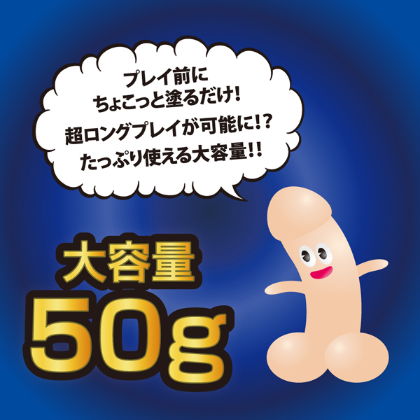 亀頭にサッとひと塗りするだけで力漲る男に変身!パートナーとのロングプレイをサポートする男性用性感ジェル。感覚を鈍感にしてくれるリドのほかに、男性をパワフルに変えるアルギニンやシトルリンなどの成分もしっかり配合!たっぷり使える50gサイズ