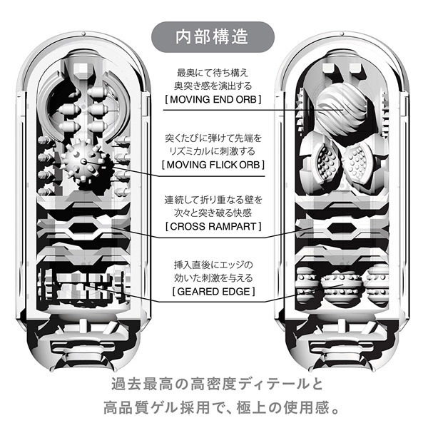 電動系で評判の良いテンガフリップゼロブラックです!洗って使えるフリップホールの続編『FLIP ZERO』に、強化された締めつけとストロングバキュームを実現したBLACKが登場。内部は高品質ハードゲルを採用した複雑な幾何学構造!ローション漏れを防ぐシームレスな挿入口や、側面の大型パッドでバキューム調整も出来たりと使い勝手の良さも◎。パカッと二つに開く洗いやすい設計で約50回ほど繰り返し使用可能。保管しやすいスタンド&クリアカバーとすぐに使えるパウチローション2個も付属。洗って繰り返し使える「使い捨てないTENGA」として好評だったフリップホールがさらにパワーアップ!強力な密着感で挿入感も利便性も向上した未来型のTENGAホール。高品質素材や最新のテクノロジーを駆使して再設計された、これまでにないハジける快感をお楽しみ下さい。※【保管方法】よく乾燥させて水気が無い事を確認し、本体にスライドアームを取り付けてスタンドに置いてクリアカバーを被せて保管して下さい。保管の際には直射日光の当たる場所や、高温になる場所を避けて保管して下さい。