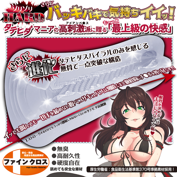 ロングサイズで挿入長が長くしっかりとしたゾリヒダ快感が楽しめるハード素材の非貫通オナホ「タテヒダスパイラル ゾリゾリハード」。一点突破刺激系で無臭で耐久性も高く、挿入しやすそうな入り口に筒型形状のアウターフォルムとシンプルさを極めた至極のボディとなっております♪内部構造は狭穴から始まり挿入直後から縄目のような肉襞をトルネード配置!このホール特有のV字溝にローションが滞留することで、派手めな刺激特性がガッツリ搾精してくれます♪最奥ではボール状の空間を用意!亀頭をバキュームしながらドバっとバク射するゾーンがあなたを待ち受けます♪