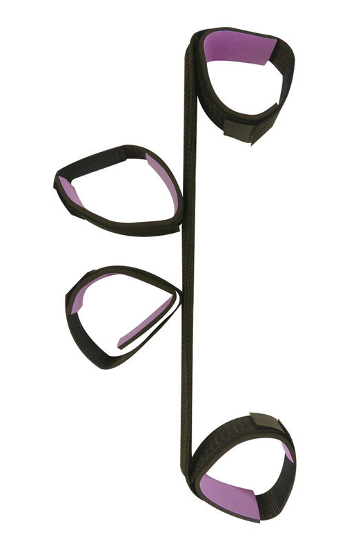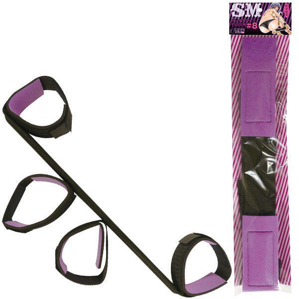1本のベルトに4つの枷!数珠繋ぎに手足を固定し、身体を折り曲げたままキープするSM拘束具。がっちり固定できて、外すのは簡単!初めてでもチャレンジしやすい、マジックテープ留めの黒い手足枷です。紫の部分はソフトウレタン製!金属のようにヒヤッとせず、プレイ中に痕が残りやすい手首・足首を優しく保護する、簡易SMグッズです。●メーカー型番:KNK-028