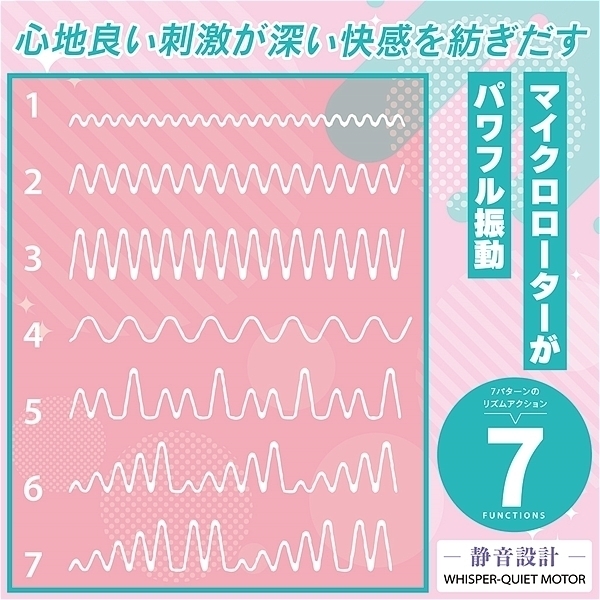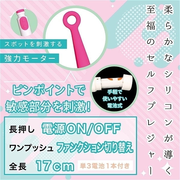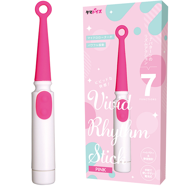 Vivid Rhythm Stick Pink。ビビットな快感!柔らかなシリコンが導く至福のセルフプレジャー、心地良い刺激が深い快感を紡ぎだし柔らかなシリコンがあなたの快楽を包み込む。ピンポイントで敏感部分を刺激!ハイパワー&静音設計、マイクロローターがパワフル振動、7パターンのリズムアクション。