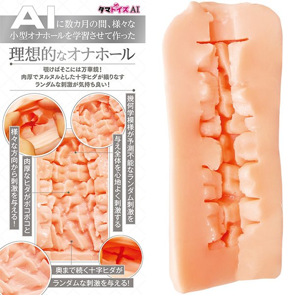 贅沢な挿入刺激であなたを包み込みます♪この非貫通オナホールは、ブロックのような肉突起が360度からアタックして、予測不能なランダム刺激を提供します!高弾力で伸縮性のあるフレキシブルスキン素材を採用し、タマトイズの国内工場生産による高品質が保証されています♪シンプルな筒型アウターフォルムで、ハンドリングもしやすい設計!オリジナルAIVシリーズをコンパクトにサイズダウンし、手軽に楽しめるようになっています♪AIが導き出した最適な内部構造により、無数のボコボコとした突起がサオ全体を刺激し、射精感を促進!内部の突起は先端が山型になっており、ヒダのようなズリ感も楽しめます♪さらに、幾何学模様のような突起配置が、予測不能なランダム刺激を生み出し、独特の挿れ心地を提供します!奥まで続く十字ヒダが織りなす刺激が、全体を心地よく包み込む♪サラサラのローションと合わせて使用することで、より滑らかな使用感を楽しむことができます!万華鏡のような内部構造が、視覚的にも楽しめるギミックを持ち、飽きることなく使用できるでしょう♪●メーカー型番:TMAImini-003