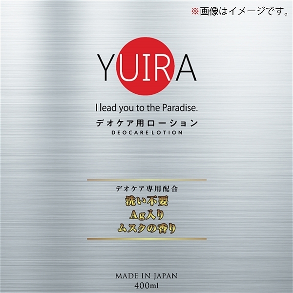 YUIRAより、デオケア成分配合の洗い不要ローションが新発売。・除菌効果があるAg入り・乳酸菌入りだから肌環境にも優しい・洗い不要、拭くだけ簡単処理!ムスクの香りも付いて使用後の気になる匂いも軽減!400mlの丁度いいボリューム感!普段使い様のスタンダードモデルです!※安心安全の日本産商品です。<内容成分>水、グリセリン、PG、カルボマー、乳酸桿菌溶解質液、ヒアルロン酸Na、アロエベラ葉エキス、ニンニクエキス、EDTA−2Na、銀、香料、フェノキシエタノール、水酸化Na<使用上のご注意>・非常に滑りやすいのでご使用の際は十分に注意してください。・誤って飲み込んだ場合、お肌に合わない時はすぐに使用を中止し専門医に相談してください。・お子様の手の届かないところで保管してください。・直射日光のあたる場所、高温・多湿の環境での保管は避けてください。・目に入った場合は綺麗な水、又はお湯で洗い流してください。・開封後はなるべくお早めにご使用ください。
