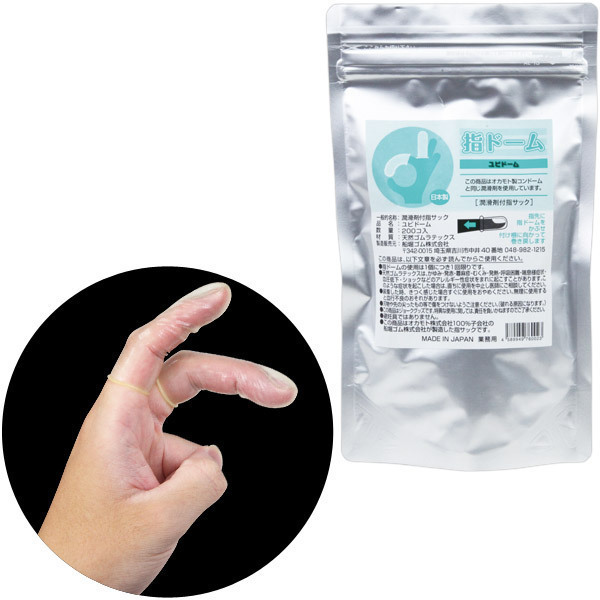 ヴァギナやアナルの愛撫に!薄くてフィット感に優れた指装着型コンドーム(200個入)。ローションを塗布した使い捨てタイプ!指にはめることで爪に雑菌が入るのを防ぎ、傷つきやすい粘膜を保護できる日本製のフィンガーコンドームです。ナチュラルカラーの天然ゴムラテックス製!厚みがないため、感触を損なうことなく衛生的なプレイができます。