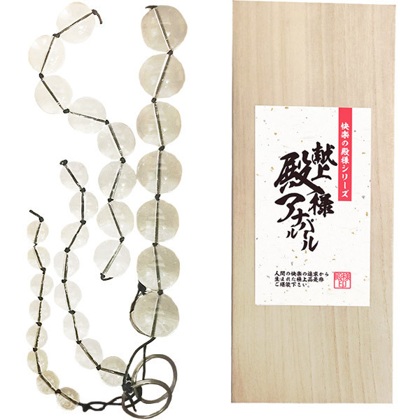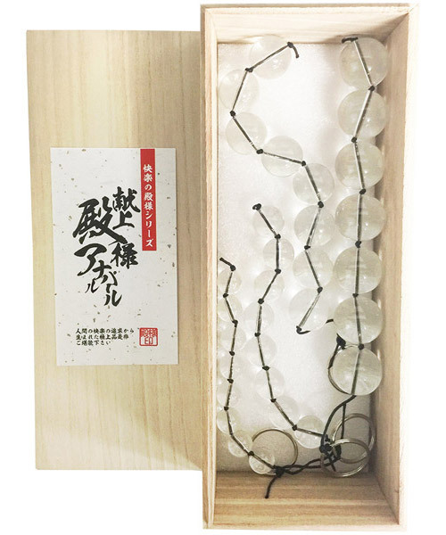 快楽の追求から生まれた極上の逸品!快楽の殿様シリーズが贈るアナルパール。●品格が漂う桐箱風パッケージ●ビーズ仕立てのクリアボール●引き抜きやすい持ち手リング●組み合わせでステップUP可。お尻の穴から一気に引き抜くゾクゾク刺激にもう夢中!連なった大小のクリアパールが極上の快楽を生み出すアナルグッズです。