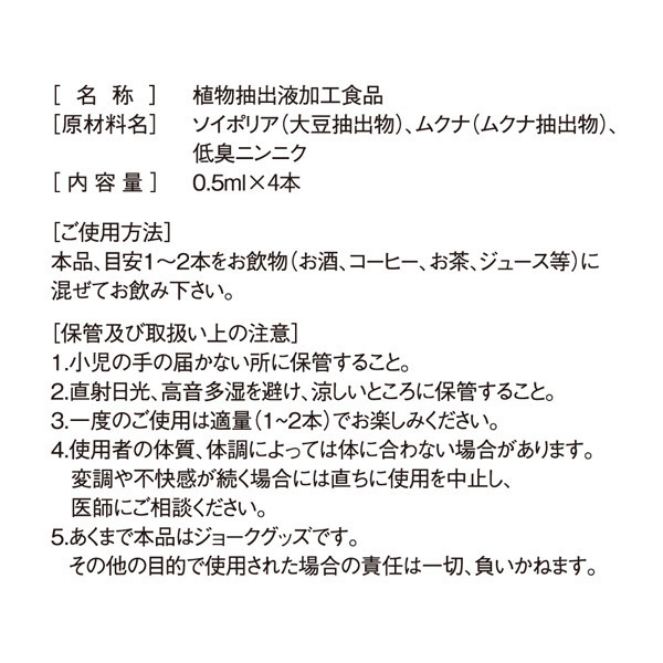 大豆抽出物・ムクナ抽出物・低臭ニンニクを配合した女性用コスメ「とろとろ姫S ガクガク」。内容量0.5ml×4本入り