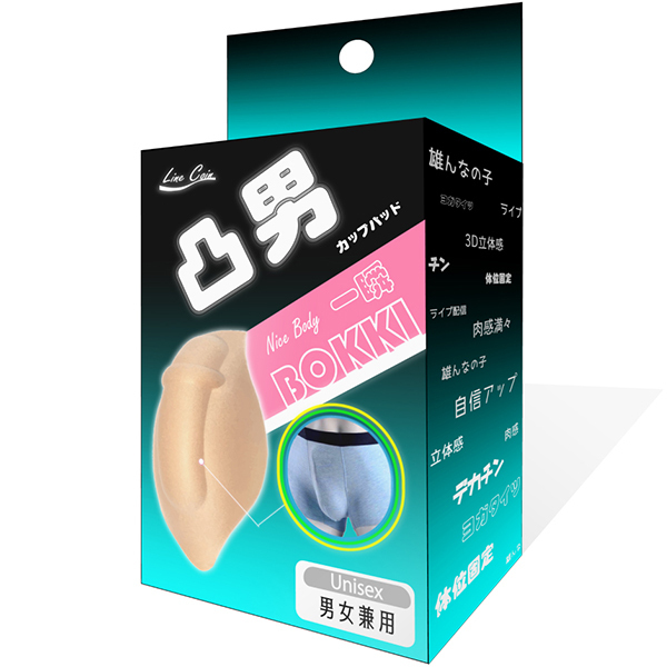 本商品を下着の中に入れて使用!下着の中で勃起しているかのような自然に膨らんだモッコリ状態を演出できるインナーパッドです♪自分のアソコに自信の無い男性や雄んなの子、コスプレイヤーなど様々な方にご利用いただけます!超3D立体感でリアルな柔らかさを再現♪男女共用で洗って何回でもご使用いただけます。