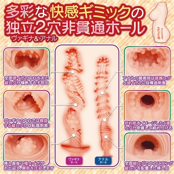 フィギュアのようなフォルムをオナホールで。ViViDoll AKARIは造形美にこだわった「Real Figure Moldingシリーズ」の第6弾オナホールです。ボディ内部に、抱き上げても反らずに直立する「StandUpフレーム」を内蔵したことで、騎乗位・駅弁などマニアックな体位でもお楽しみいただけます。ViViDoll AKARIの全長は47センチと超大型で、これは「リアル小柄女性の等身大」に匹敵します。総重量は「9.2キロ」と存在感あるボリューム、加えて反らずに直立する「StandUpフレーム」の効力により、臨場感溢れるリアリティあるプレイをお楽しみいただける等身大トルソーオナホールです。ホールは「ヴァギナホール」と「アナルホール」の2穴をボディの中心に配置。9.2キロの大型ボディによる「本物のような肉厚感」と6つの「個性ある快感ギミック」を存分にご堪能いただけます。ViViDoll AKARIと一緒に三次元を超えた濃密な時間をお過ごしください。保管に便利な専用発泡スチロールケース、オリジナルローション付属。