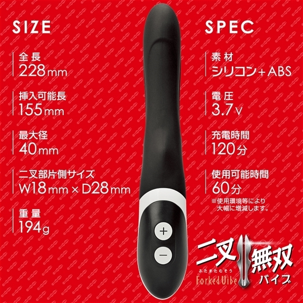 二又に割れる奇妙な形状バイブ。二つの先端にそれぞれモーターが搭載されていて挿入しても、挟んでも楽しめます。滑らかな肌触りのシリコン素材にIPX7の完全防水性能と使用感と実用性に拘りました。リチウムイオンバッテリーにハイパワーWモーター搭載。中でも外でも楽しめるバイブです。