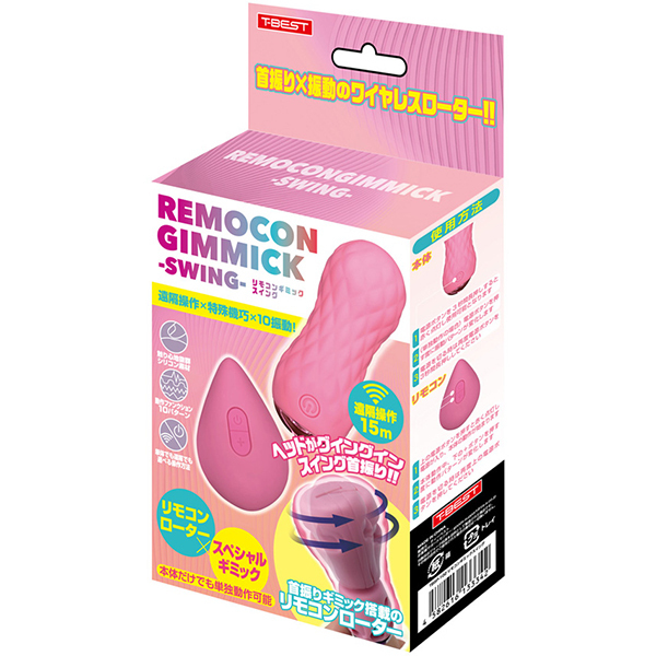 ただ震えるだけじゃない!特殊な機巧アクションが遠隔操作で楽しめる、新しいワイヤレスローター「リモコンギミック」!ブロッサムピンクカラーの「スイング」モデルは、首振りするスイングギミックを搭載!小さなボディながらも、まるで電動バイブのような、ヘッドがグイングインと首振りスイングします。電動バイブ特有のあのクネリ回転の気持ちよさ、モバイルで楽しめます!さらに、ギミック部分だけではなく、リモコン部分も最先端!遠隔操作の距離は15mまでOK。操作もシンプルな2ボタン式。動作ファンクションは10アクションパターン。本体部分には触り心地の良いシリコン素材。本体はUSB充電&リモコンは単四電池と、入手しやすさも抜群。さらには、本体だけでも動作できるスグレモノ!まさに新時代リモコンローターのフラグシップマシン!新感覚のリモコンプレイを堪能しましょう!