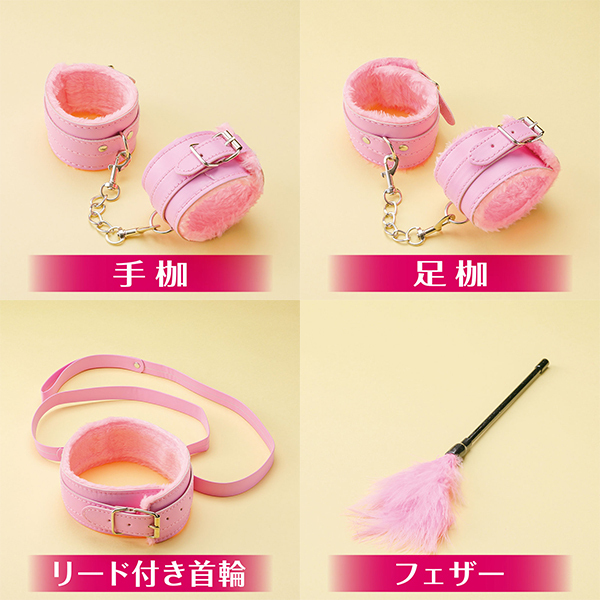 「悶子のいやぁ〜ん感じちゃう…〜ソフトSM10点セット〜」大人気「悶子」シリーズから、初心者でも手軽に本格的なプレイを楽しめるSM10点セットが登場です。本格的、けれど初心者向けなので、装着する人に優しい感触の作りです。また首輪・手枷・足枷にはふわふわの優しいファー付きです。本体:アイマスク(8.0×19.0cm)、ボールギャグ(ボール直径4.5cm・バンド長さ最大63.0cm・幅2.0cm)、リード付き首輪(首輪長さ最大51.5cm・幅5.5cm・リード長さ95.0cm)、乳首枷(7.0×3.0cm×2個)、手枷(長さ最大32.0cm・幅5.0cm・チェーン長さ10.0cm)、足枷(長さ最大37.0cm・幅5.0cm・チェーン長さ10.0cm)、手枷足枷十字連結(31.0×31.0cm)、バラムチ(全長62.0cm)、フェザー(全長27.0cm)、ロープ(全長55.0cm・太さ0.8cm)