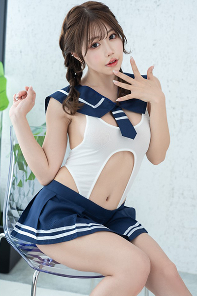 トップスもスカートもミニ丈、露出が多く、そのドキドキ感がたまらない。バストぎりぎりに仕立てたショート丈トップス、裾にフリルがあしらわれたふんわりフリルスカートは、動きによってTバックが覗き見えるのではないか…という期待感を煽る計算されたセクシー仕様