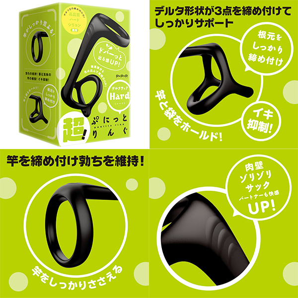 超!ぷにっとりんぐから、竿と根元をしっかりサポートするリングが登場。根元を3点で締め付けるデルタリング!竿をしっかり締め付けるリングでイキ抑制!サッと装着♪ピタッと密着!はずれにくい弾力性、臭いのない高品質シリコンでしっかり締め付け、着けてるストレスを軽減!すべすべ装着感で毛の巻き込みを緩和。 肉壁ゾリゾリサックでパートナーも快感UP!自分好みの締め付けで勃ちの維持!萎え気味の竿の補強!イキ抑制!ハードな締めつけでドバーっと出る感UP♪きゅーっと超極楽発射!