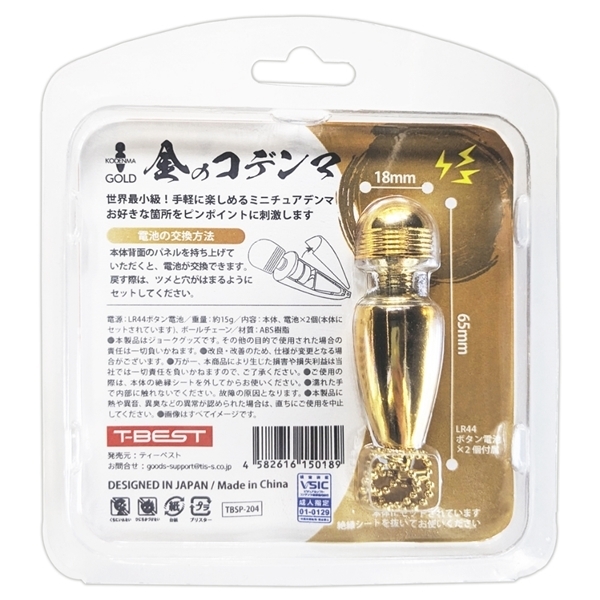 全長65mm、ヘッド18mmの世界最小級のコンパクトデンマです♪小さなボディに高級感のある光沢フォルムが特徴で、毎分8,000回転の強力な微振動を実現します。スライド式で簡単にオンオフができ、使い勝手も抜群!電池交換も簡単で、ネジなしの裏フタを外すだけ♪ボールチェーン付きなので、キーホルダーとしても持ち運びに便利!金色の輝きが際立つ一品で、いつでもどこでも手軽に使える頼れるアイテムです。