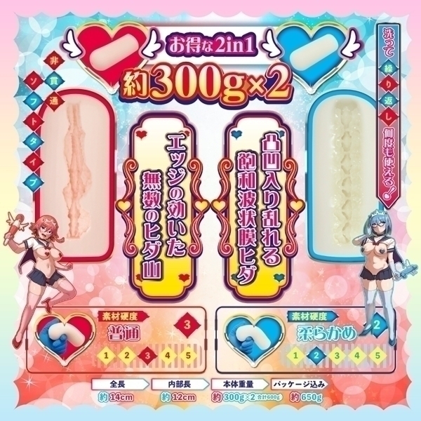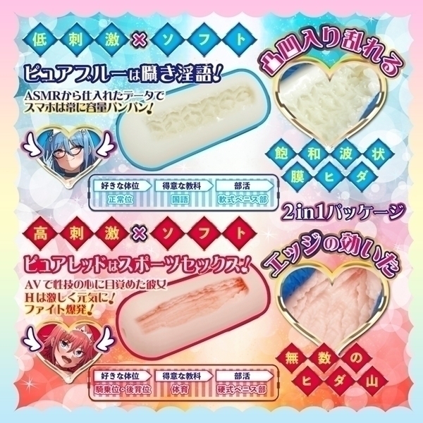 個性的な設計が特徴の非貫通型ホール2本セットです♪ピュアブルーとピュアレッドの2種類がセットになっており、異なる感触を楽しめます!ピュアブルーは柔らかめの弾力で、波状ヒダと突起が絡み合う構造♪じっくりとリラックスした時間を過ごしたい方におすすめです!一方、ピュアレッドは縦ヒダ構造で高刺激を提供し、アクティブな使用感を求める方に適しています!どちらも柔らかめの素材で心地よい使用感を実現しています♪COOLP初の1箱2本入りパッケージで、シーンに応じて使い分けることが可能です!ユニークな設計で、自宅でのリラックスタイムに彩りを添える特別なアイテムです♪