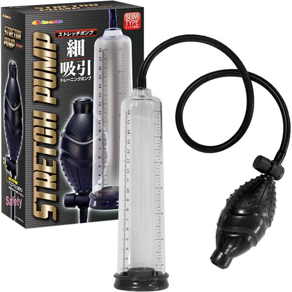 日本人サイズで使いやすい!スリムで扱いやすい「ストレッチポンプ」。●増大に期待できるペニスポンプ。●日本人向けのスリムシリンダー。●内径45mmで無駄なスペース省略。●全長20cm、細かな目盛り付き。●操作しやすいチューブ長50cm。●ワンプッシュで吸引解除可能。今までのペニスポンプは大きすぎてちょっとイマイチ…とショボンしていた男性陣に朗報!海外製が合いづらい日本人の為に設計されたスリムタイプのストレッチポンプ。無駄のないサイズでチントレタイムをスムーズかつ快適にサポートします。